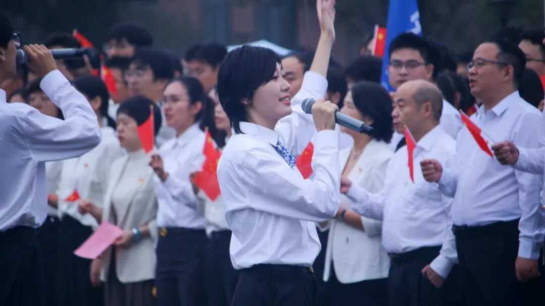 在《诗画中国》的动人演唱中,师生们仿佛步入了《千里江山图》的壮丽画卷,感受中华文化的深厚底蕴。随后,全场师生齐声高歌《我爱你中国》,激昂的歌声汇聚成对祖国的深情告白,每一个跃动的音符,都承载着数院师生炽热的爱国情怀与时代担当。