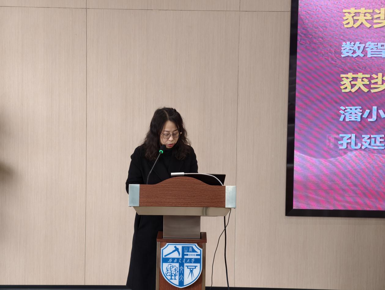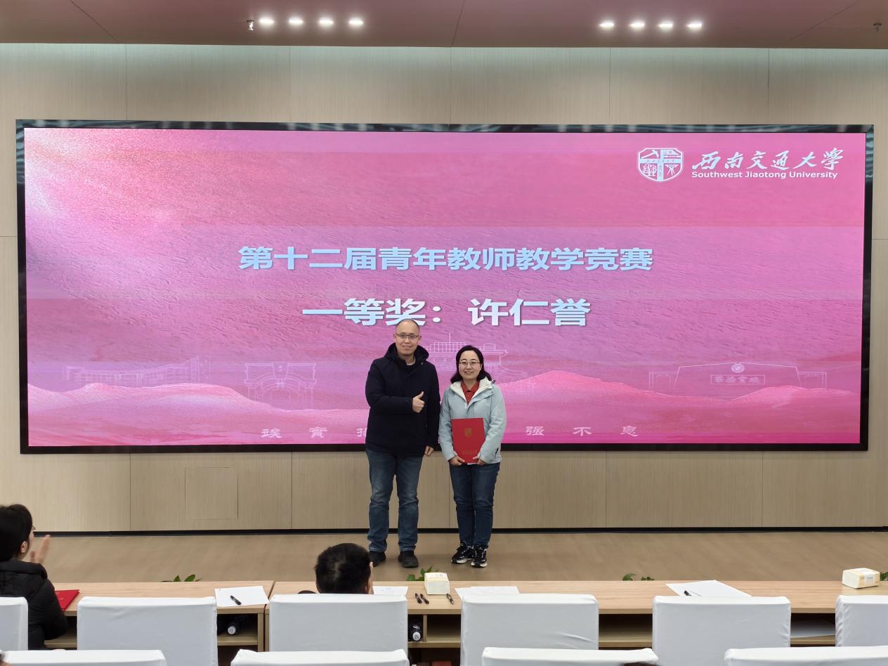 教学主管孟华为第十二届青年教师教学竞赛一等奖获得者许仁誉颁奖