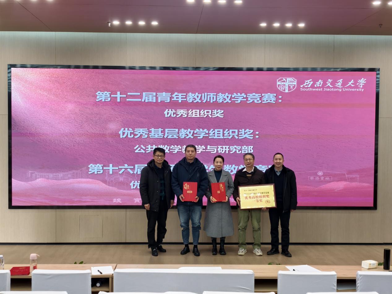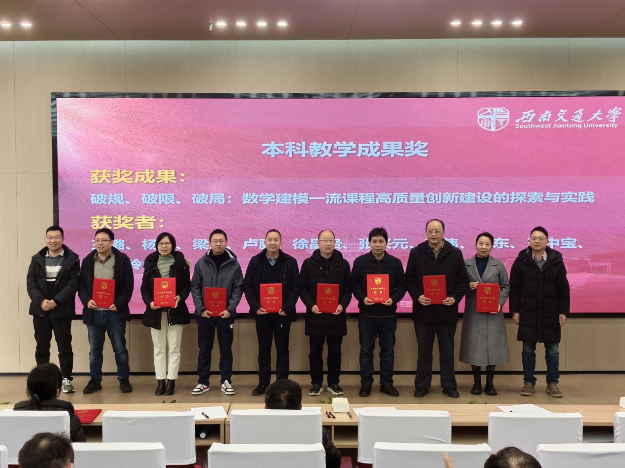 党委书记李志辉、院长杨晗共同为荣获第十二届青年教师教学竞赛优秀组织奖、优秀基层教学组织奖及第十六届全国大学生数学竞赛优秀高校组织奖的团体代表颁发获奖证书