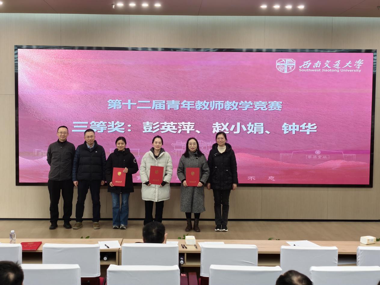 督导专家刘品、督导组长潘小东、帮扶专家冯颖为第十二届青年教师教学竞赛三等奖获得者彭英萍、赵小娟、钟华颁奖