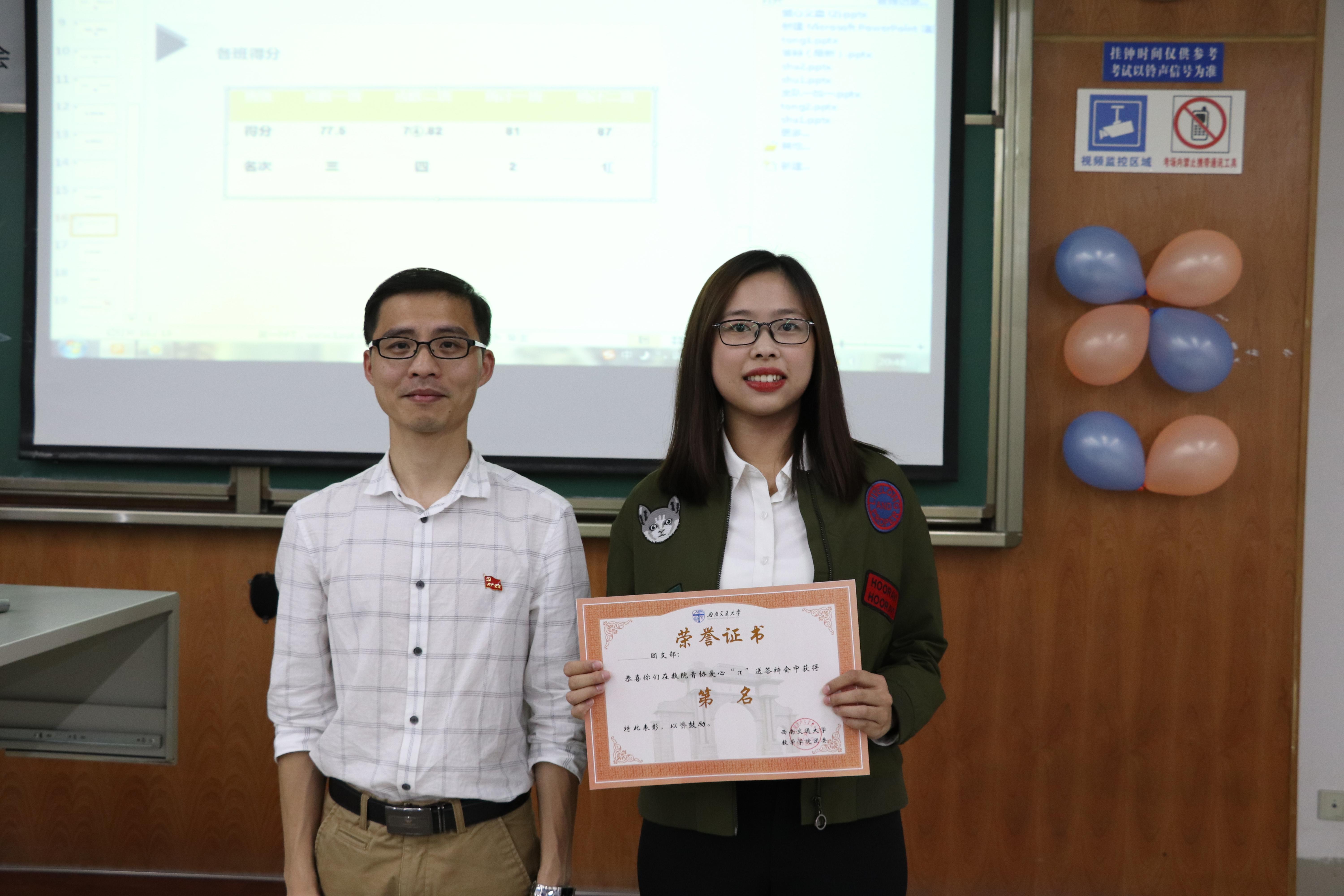 在一段展示四个班志愿活动结果的视频之后,主持人宣布:统计二班获得最高得分。接着,党委杨育鸿副书记为四个班级颁发了奖状并与同学们合影留念。