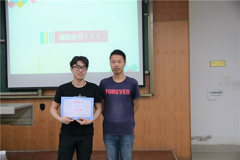 最令人期待的颁奖环节,主持人宣布杨思哲同学获得本次“交大梦想秀”一等奖,石润昊、谢欣洁同学获得二等奖,随后颁奖时,获奖选手们和评委老师进行了合影留念。