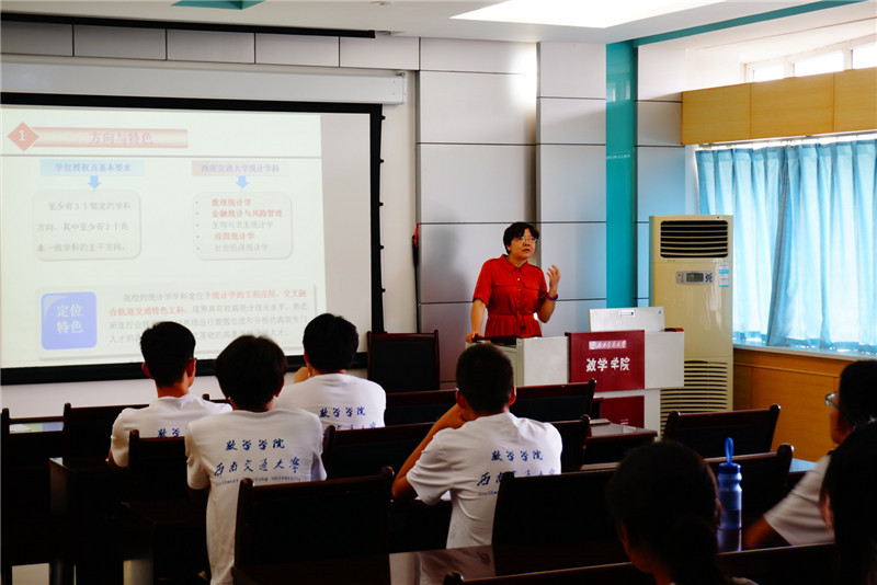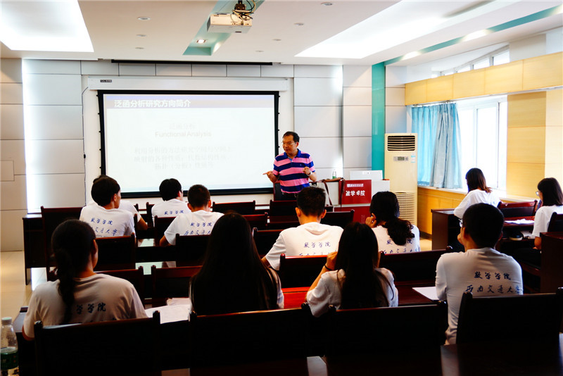 的优秀教师为同学们奉献了一场精彩的讲座。陈滋利教授、崔宁伟副教授、刘品副教授、王沁副教授以及潘小东副教授分别介绍了泛函分析学、几何与拓扑学、代数学、统计学和模糊信息处理领域,即自己的团队主攻领域的研究方向和发展应用前景。几位老师还从自己的角度对营员们提出了在未来学习和研究中的建议,鼓励同学们建立目标,并做到严谨地、批判性地进行学术研究。