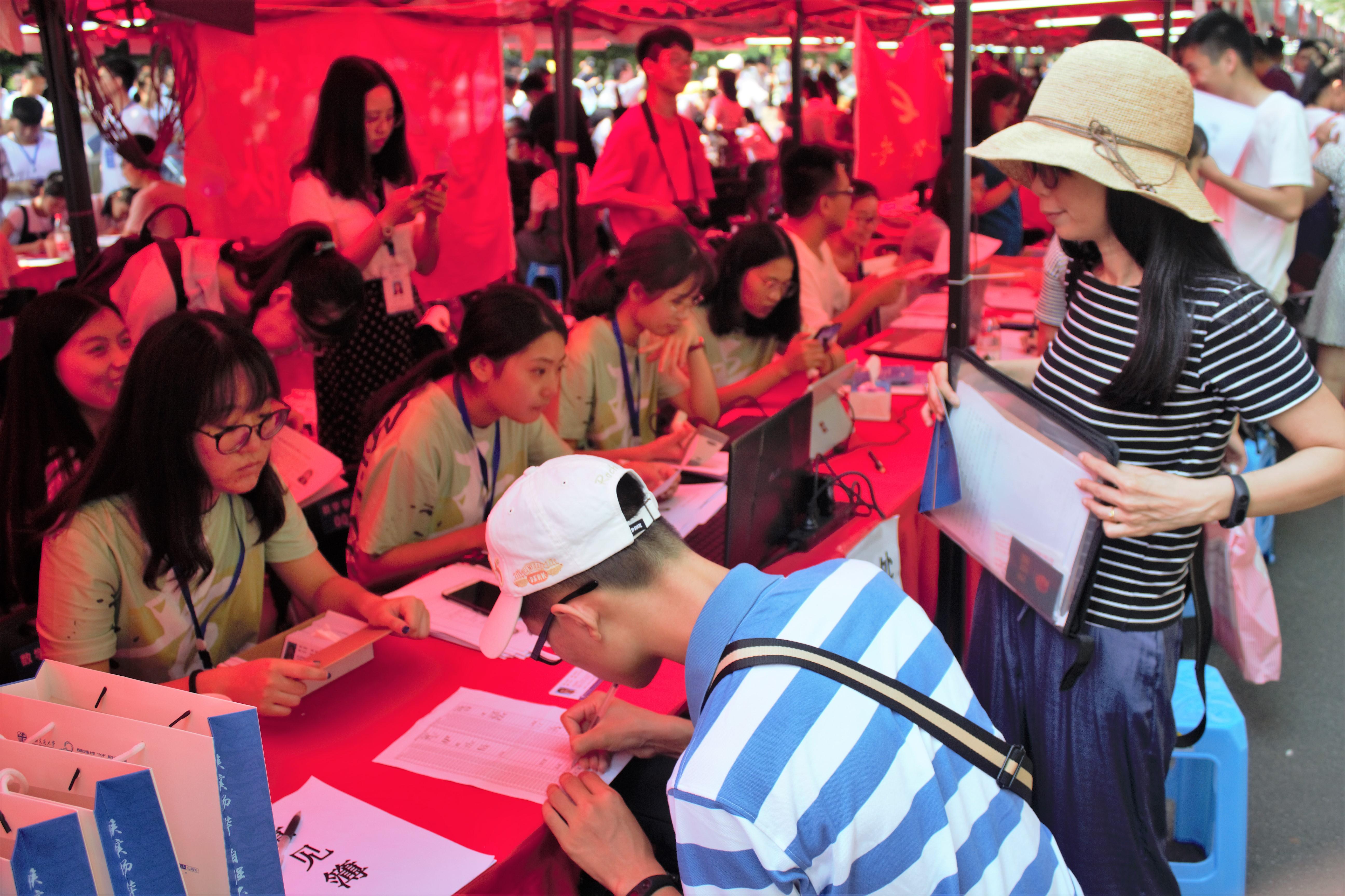 在各自的忙碌中, av解说 第一名新生于7点15左右报到。迎新同学为其检验录取通知书并发放新生大礼包后,对他进行了简短的专访。