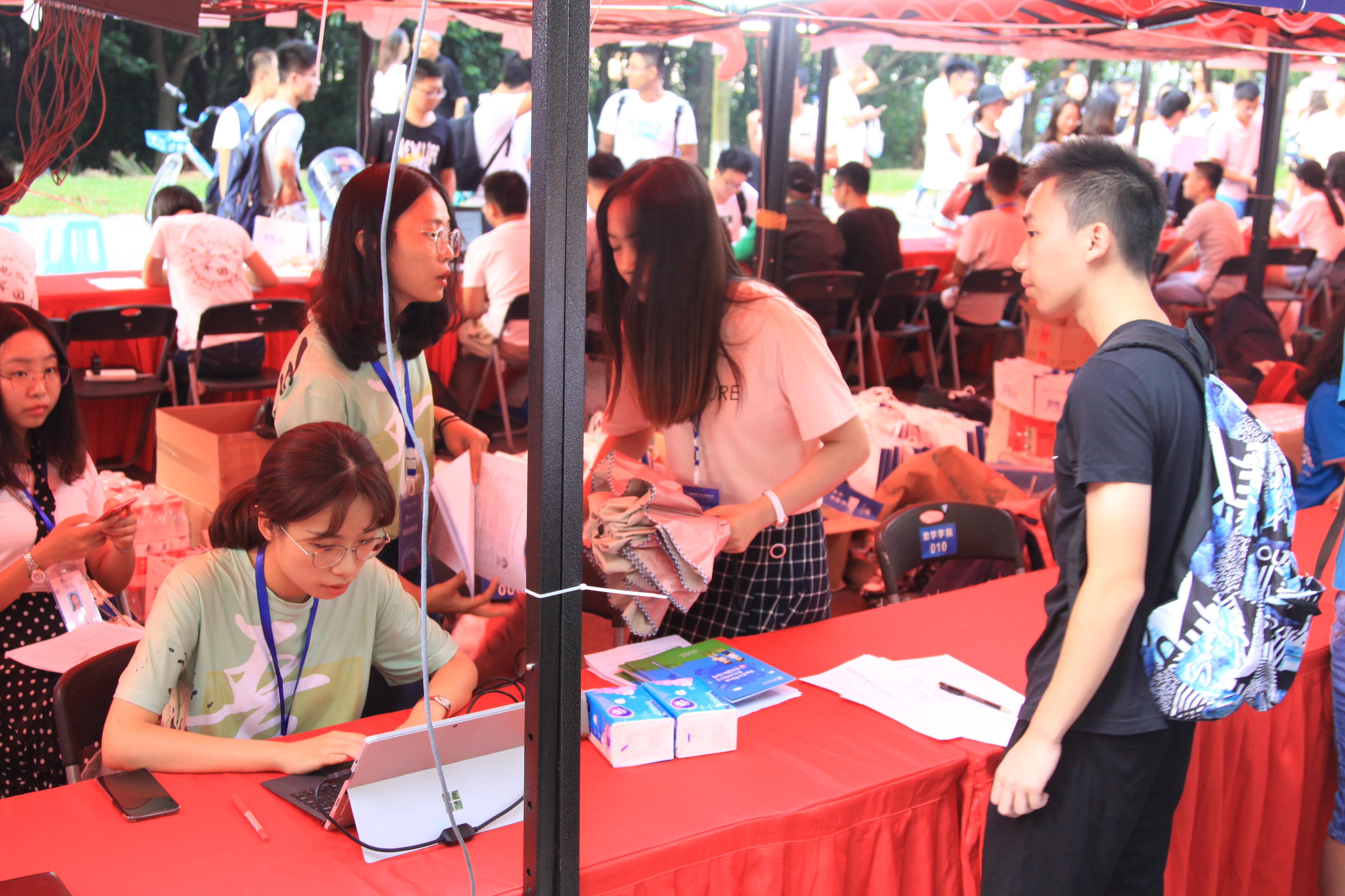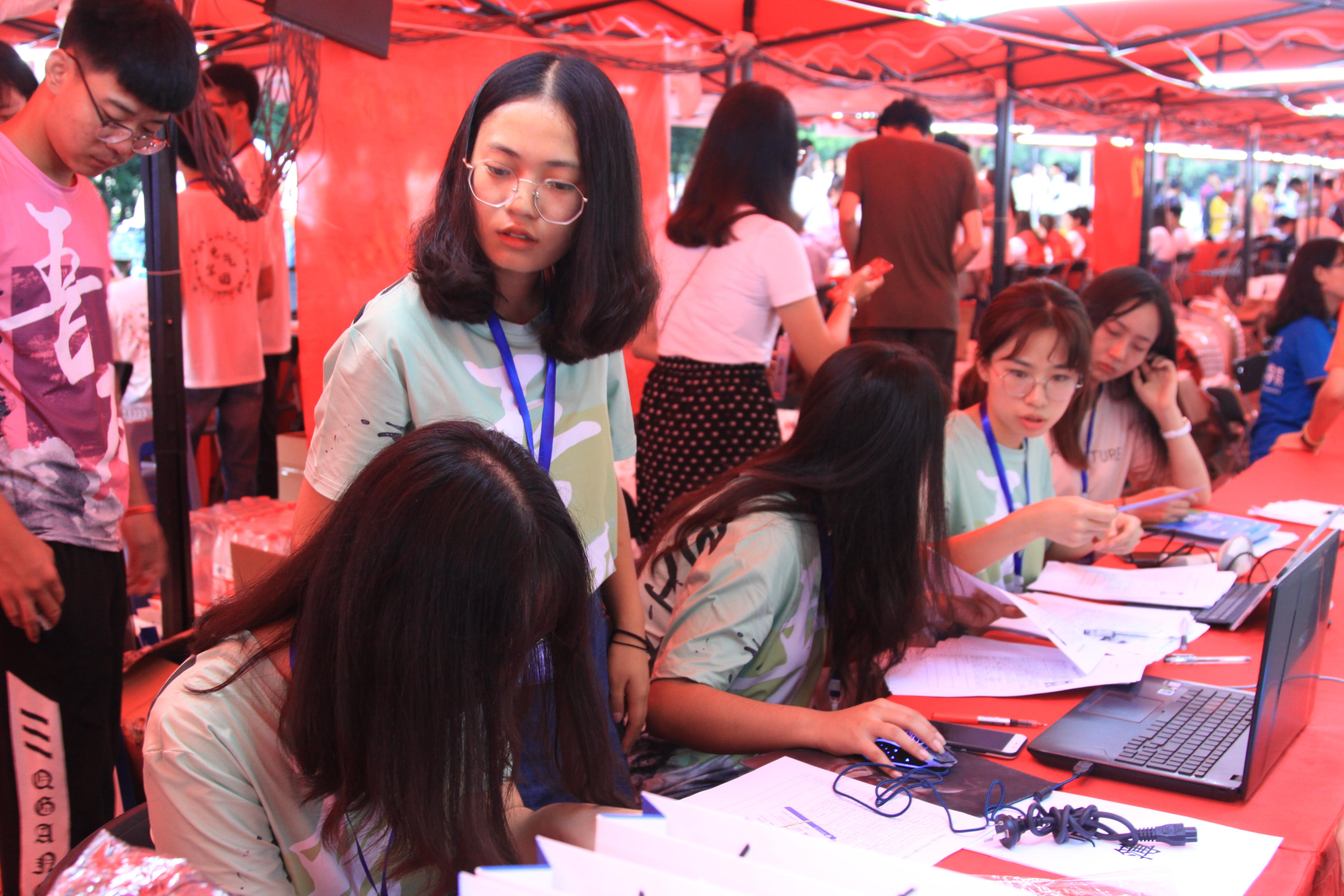 研究生会以及本科生四大学生组织的主席和部长担任迎新志愿者。首日上午,志愿者们即利用极高的工作效率帮助近40名研究生新同学和110位本科生新同学成功办理手续并入住学生寝室。接下来的时间内,志愿者们依旧热情不减地工作,为新同学和家长们展示了 av解说