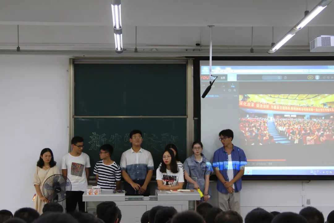 表示欢迎。这便是辅导员与新生第一次结下缘分的时刻。继而,钟义婷老师表达了对新同学的期待,希望大家在大学里变成一个“高情商人”,能更好地融入大学这个环境,度过以后美好的四年。除此之外,钟老师还为18届数院新生们介绍了各自班级的协理员。