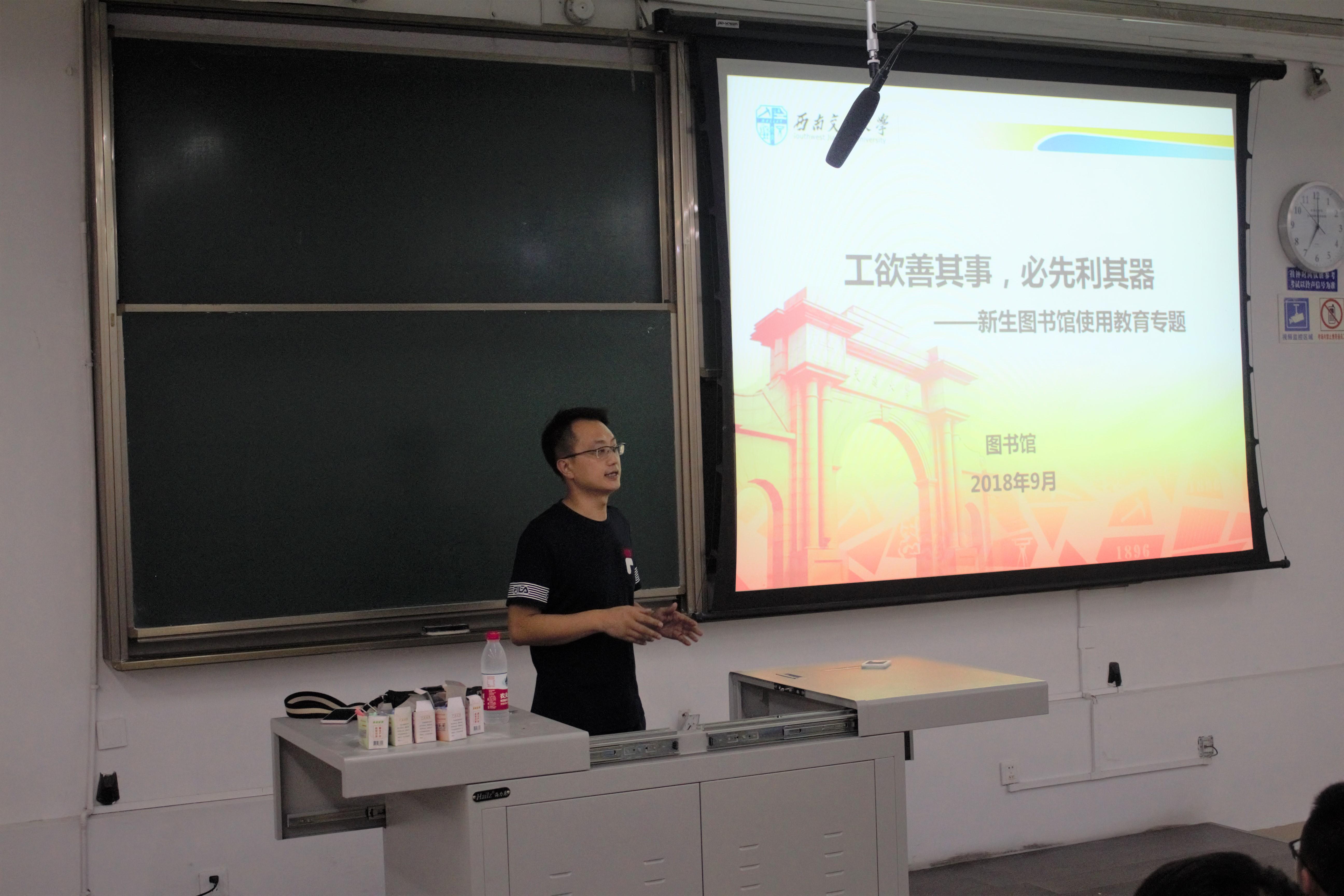 图书馆主讲人都兴宇老师分别从三个方面向本科新生讲述现今图书馆的概况。“工欲善其事,必先利其器”是本次图书馆入馆教育的专题。一个事情想要做好,必然要有好用的物器从外帮助,旨在告诉新生要好好利用图书馆的一切资源。紧接着,都老师引用了哈佛校长的观点,“人与自然的和谐统一”,要求新生好好认识和了解图书馆。犀浦校区的图书馆为大家提供了学习、研究和娱乐的物理空间,是集文化、交流、学习中心和育人中心于一体的现代化新型图书馆。随后,都老师向大家介绍了 av解说