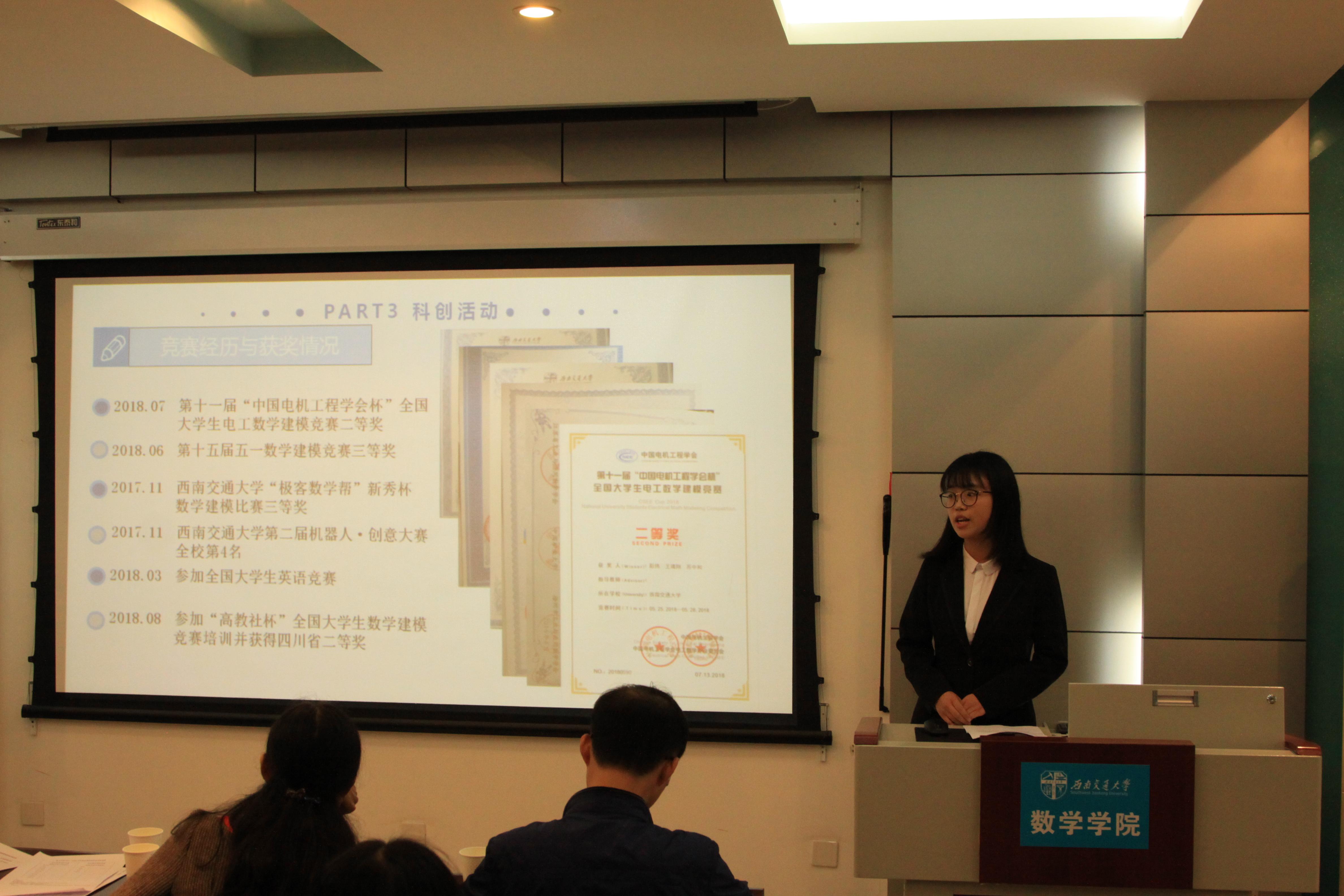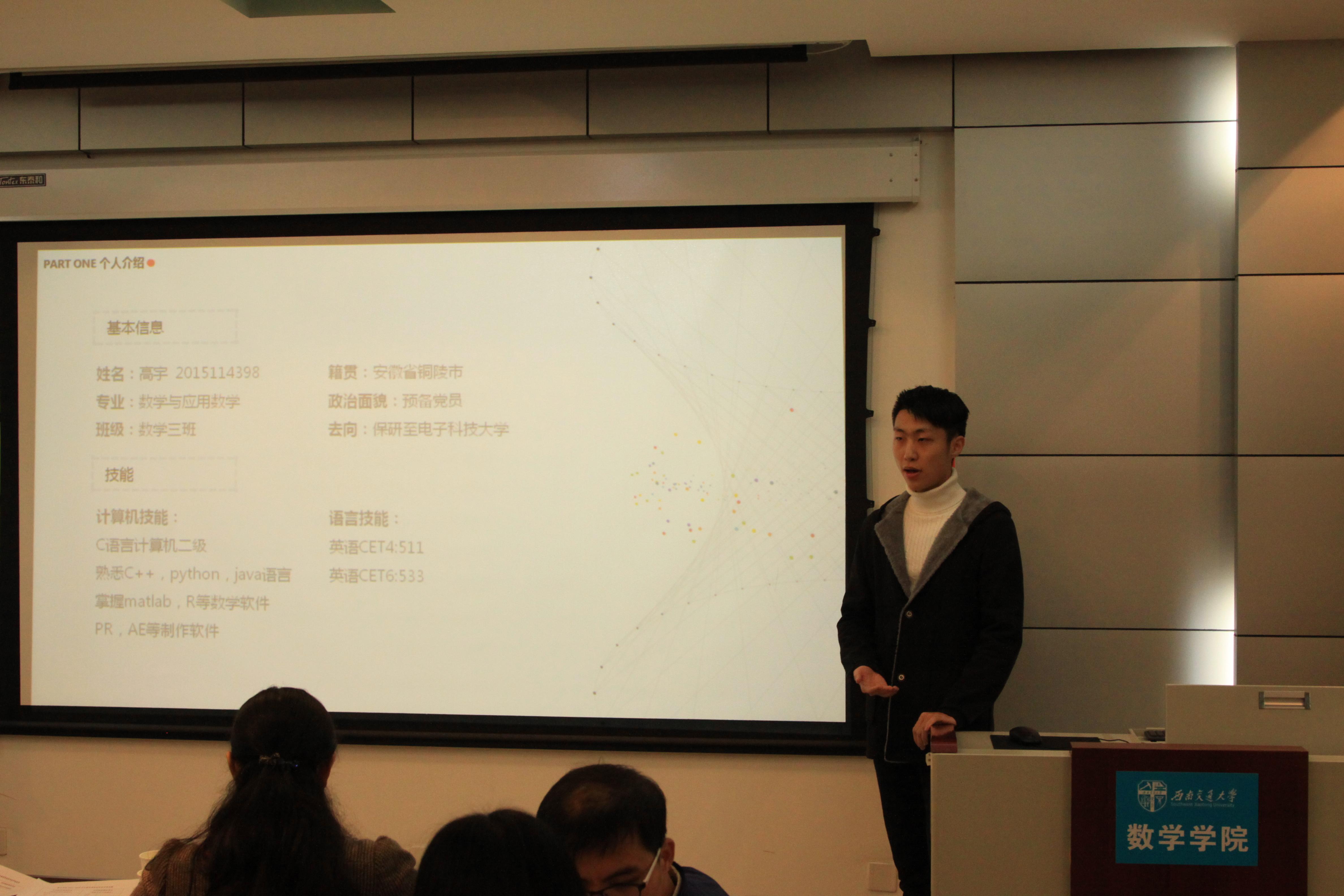 经过简单的休息与调整,极客数学帮奖学金的答辩接踵而至,答辩人从学习情况,科研竞赛等方面进行了自我的展示,彰显了交大学子优秀的综合实力。