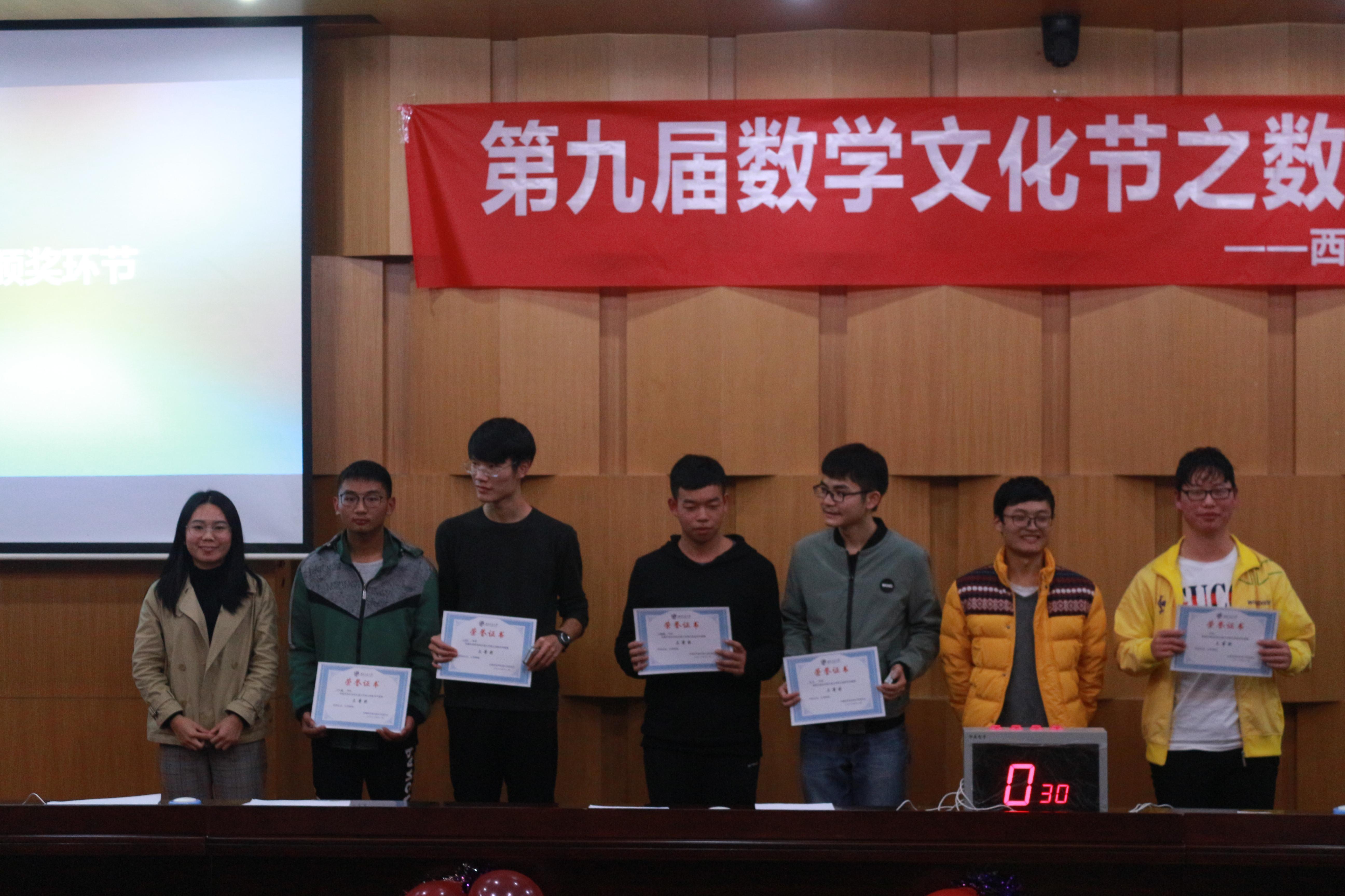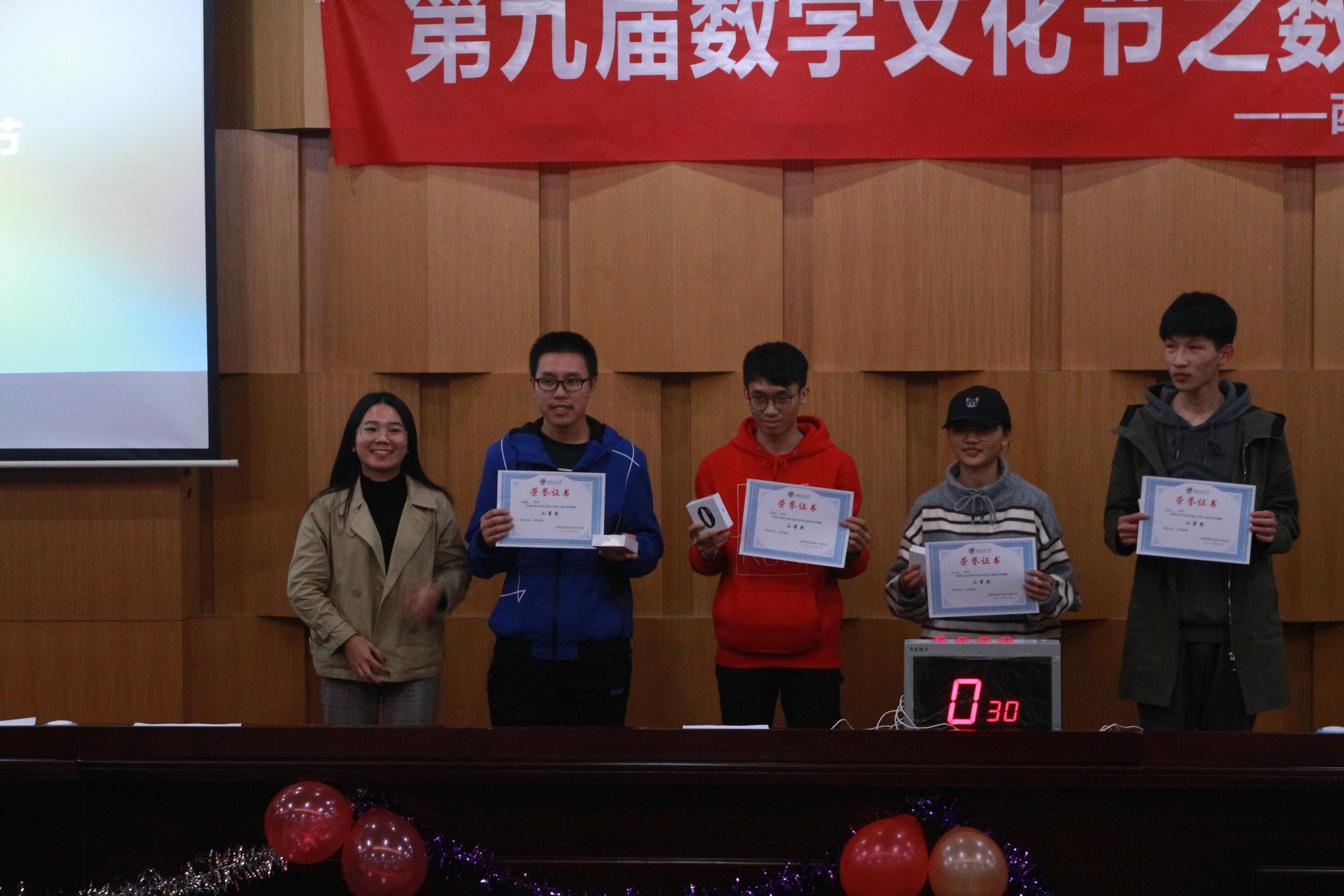 学生会承办,旨在让同学们在活动中体会到数学的乐趣,知数学、懂数学、爱数学,在今后的学习生活中能有饱满的热情与激情对待数学的学习,并将所学的数学知识很好的应用于自己的专业。总览此次活动,活动形式丰富多彩,不单单有参赛人员参与,还增加了观众可以参与的有奖竞猜环节;题目种类多样,包含了应用题,数学史,脑经急转弯等多种与数学相关的趣味性题目。