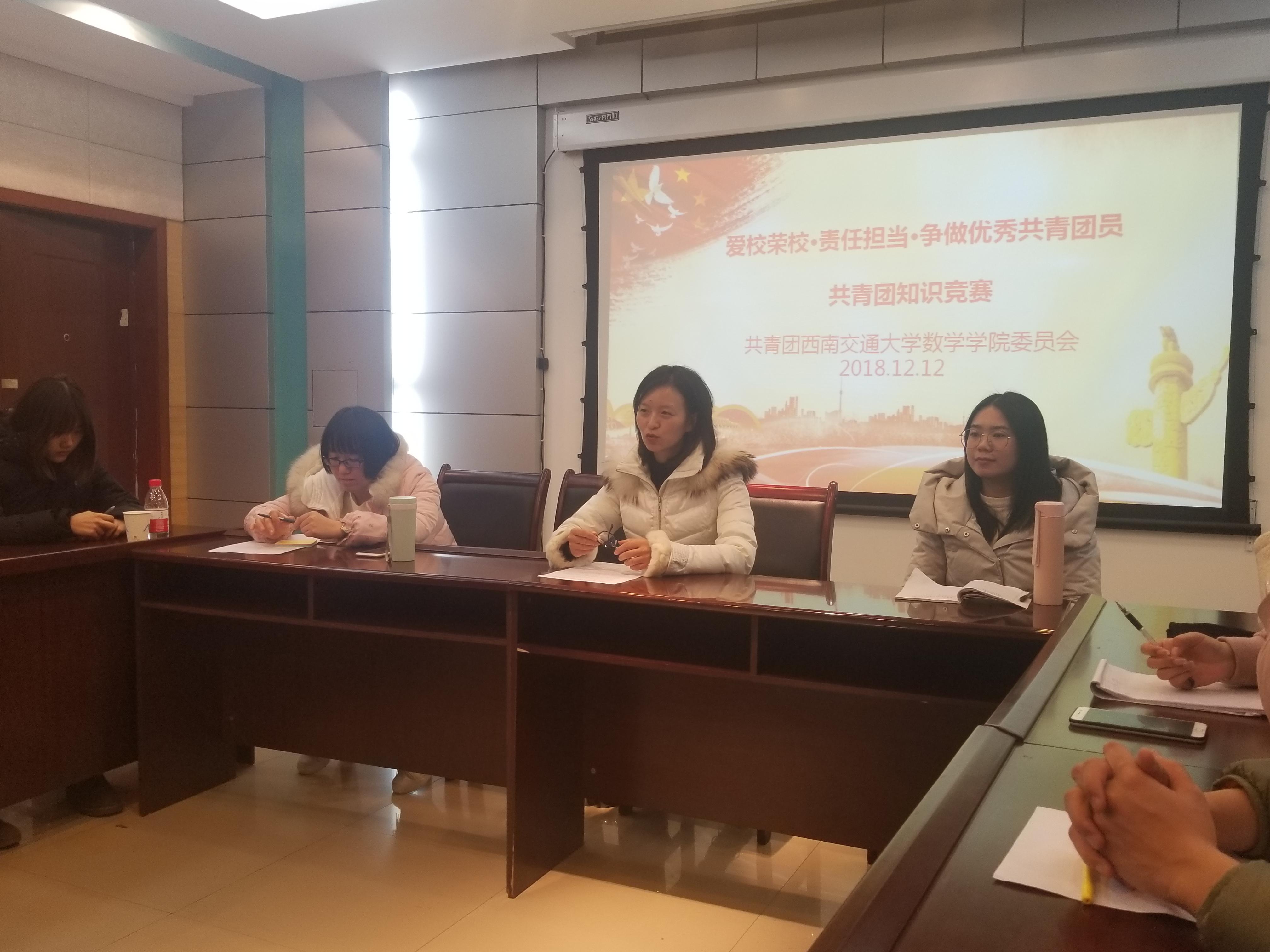 首先,邓思然老师发表了讲话。邓老师首先总结概括了四个团学组织这一年来的工作情况,鼓励各大组织的同学们在未来的工作中再接再厉;随后邓思然老师介绍了本次共青团知识竞赛的流程。接着,本次知识竞赛正式开始,大屏幕上出现的每一个问题,在场同学都积极回答,显示了 av解说