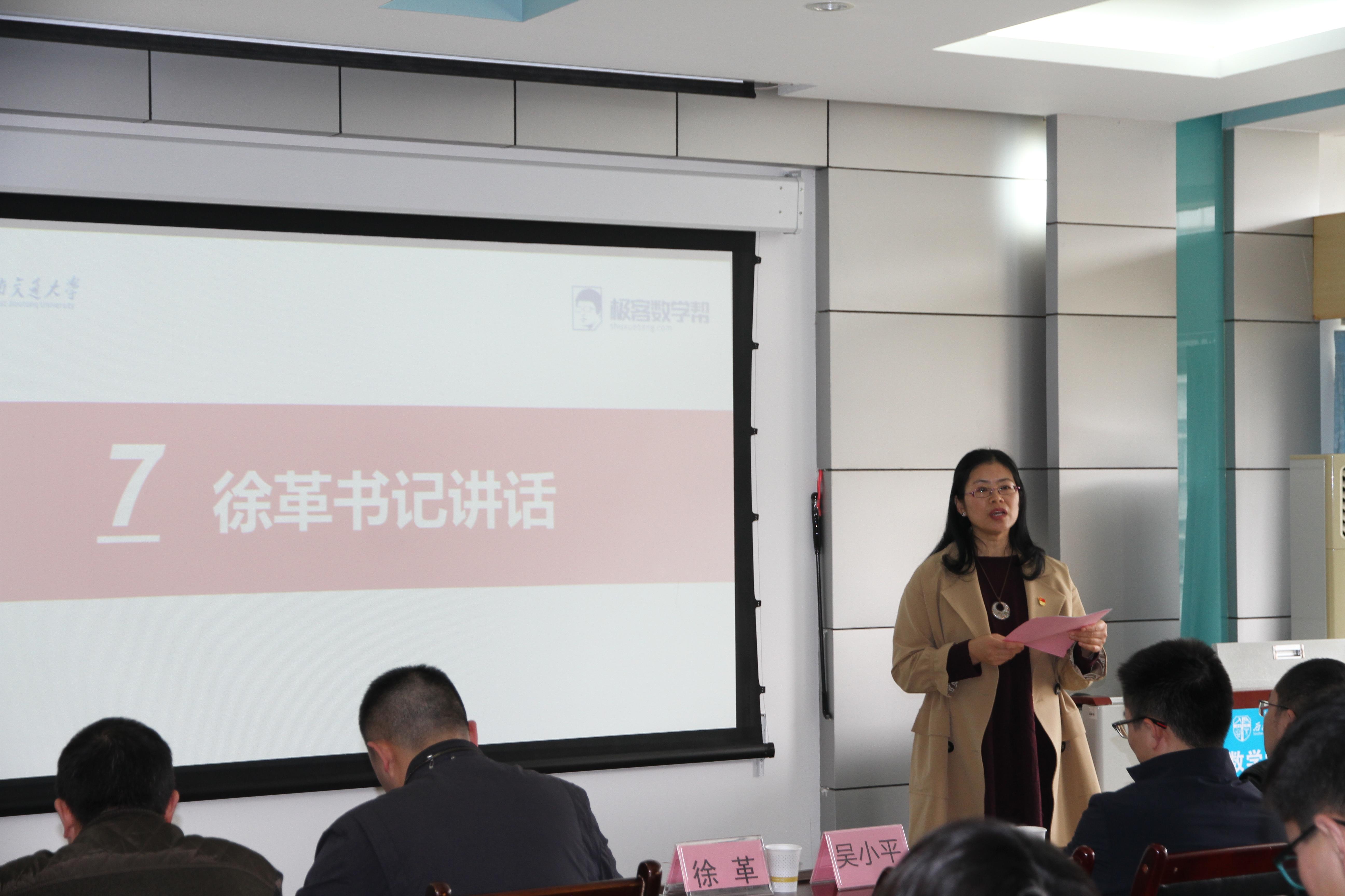 党委书记徐革、常务副院长杨晗、副院长潘小东、副院长王璐、团委书记邓思然,同时参加的还有学工组全体辅导员以及“极客数学帮奖助学金”获奖学生。仪式由 av解说