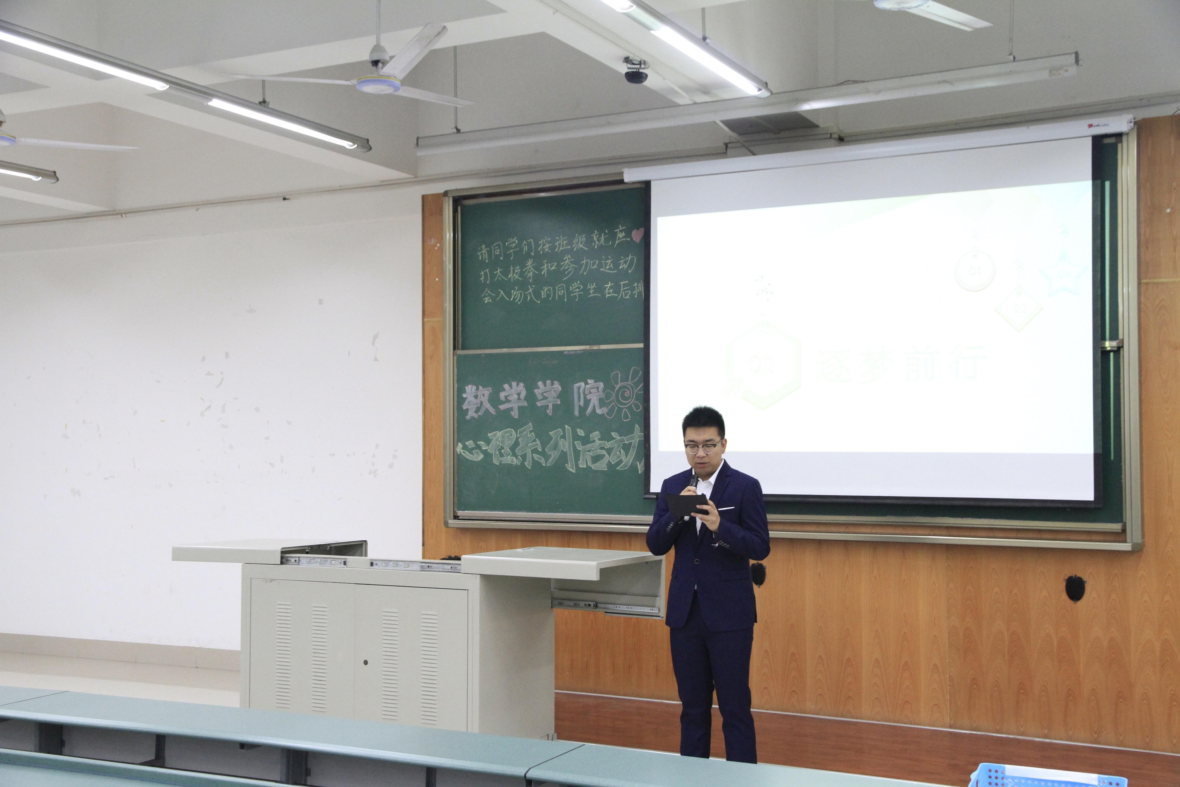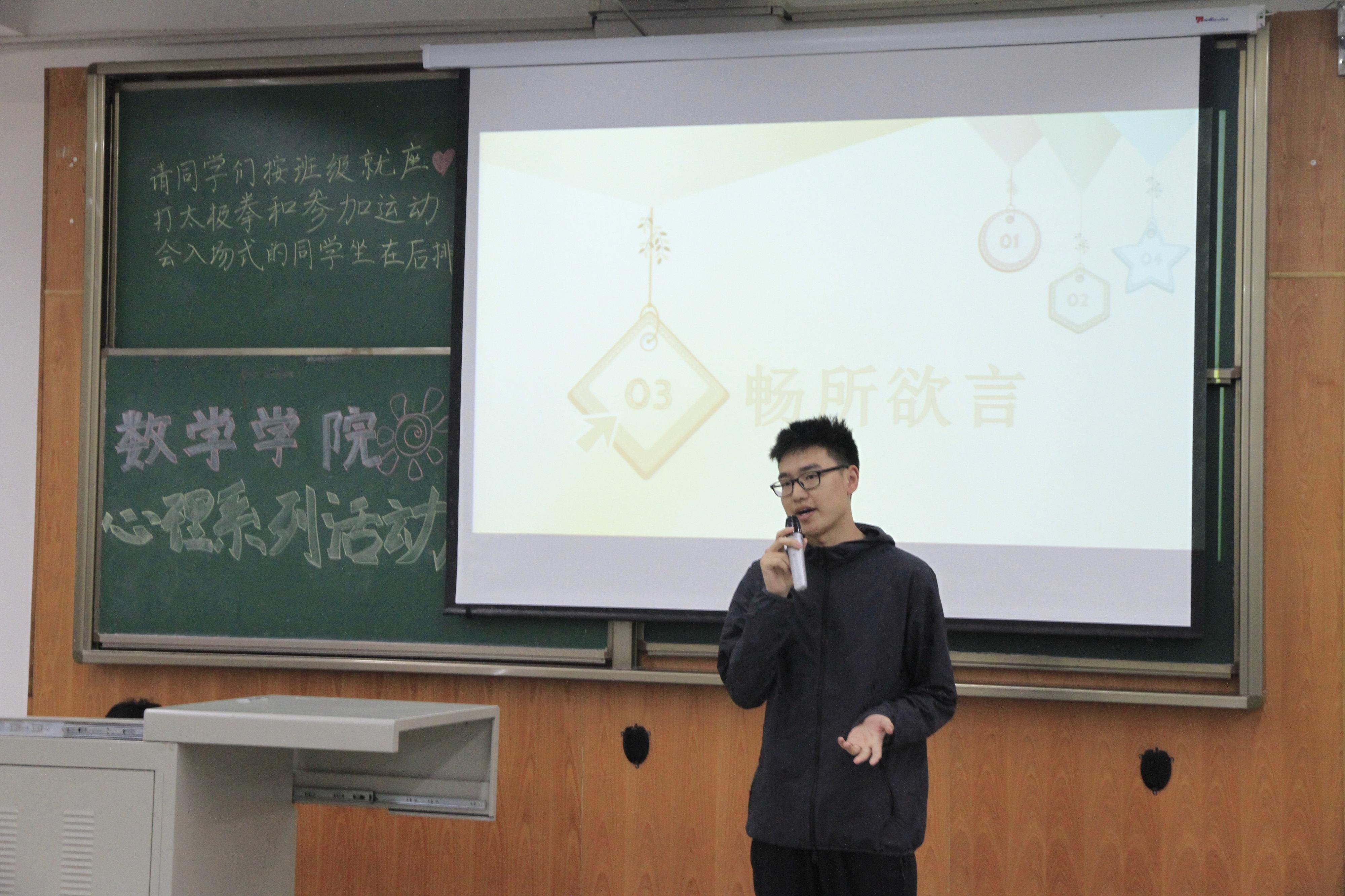 活动开始,主持人首先为大家讲述心理健康的重要性,告诫在座的同学们一定要时刻注意增强心理健康意识,学会慢慢走向成熟。接着,主持人让大家拿出纸和笔,写下自己大学四年的梦想,待到毕业时拿出,再看自己是否实现了所有的梦想,是否把自己的大学活成梦想中的样子。随后,三位同学依次登台,介绍了自己理解中的真实与幻想的关系。他们利用自身例子,讲述了自己的梦想与现实,并表达了对未来大学生活的展望。活动的最后一项是全体观看心理电影《美丽心灵》,讲述了患有精神分裂症的数学家约翰·福布斯·纳什的故事。电影意味深长,让大家更加深刻地感知心理健康的重要性。