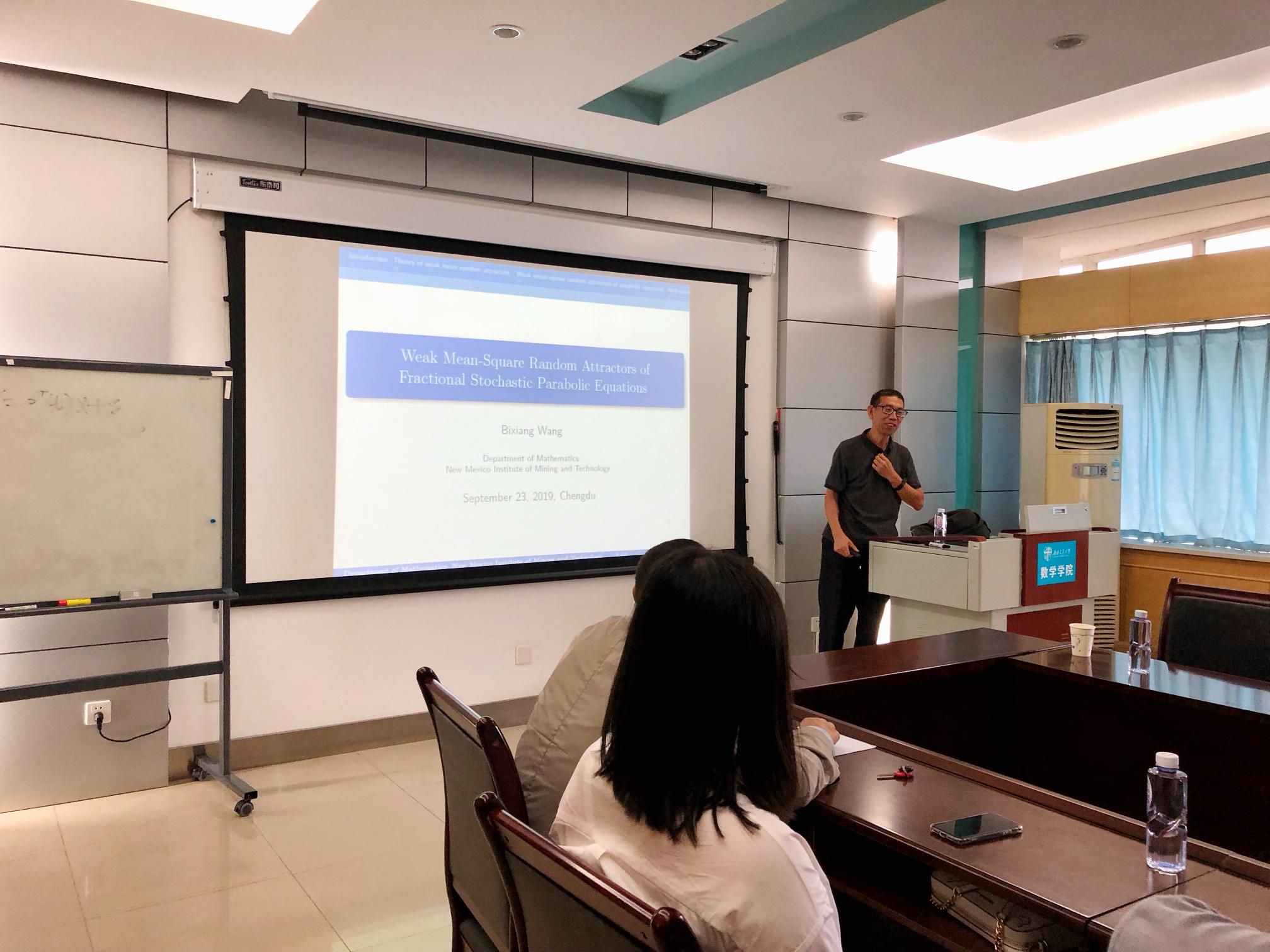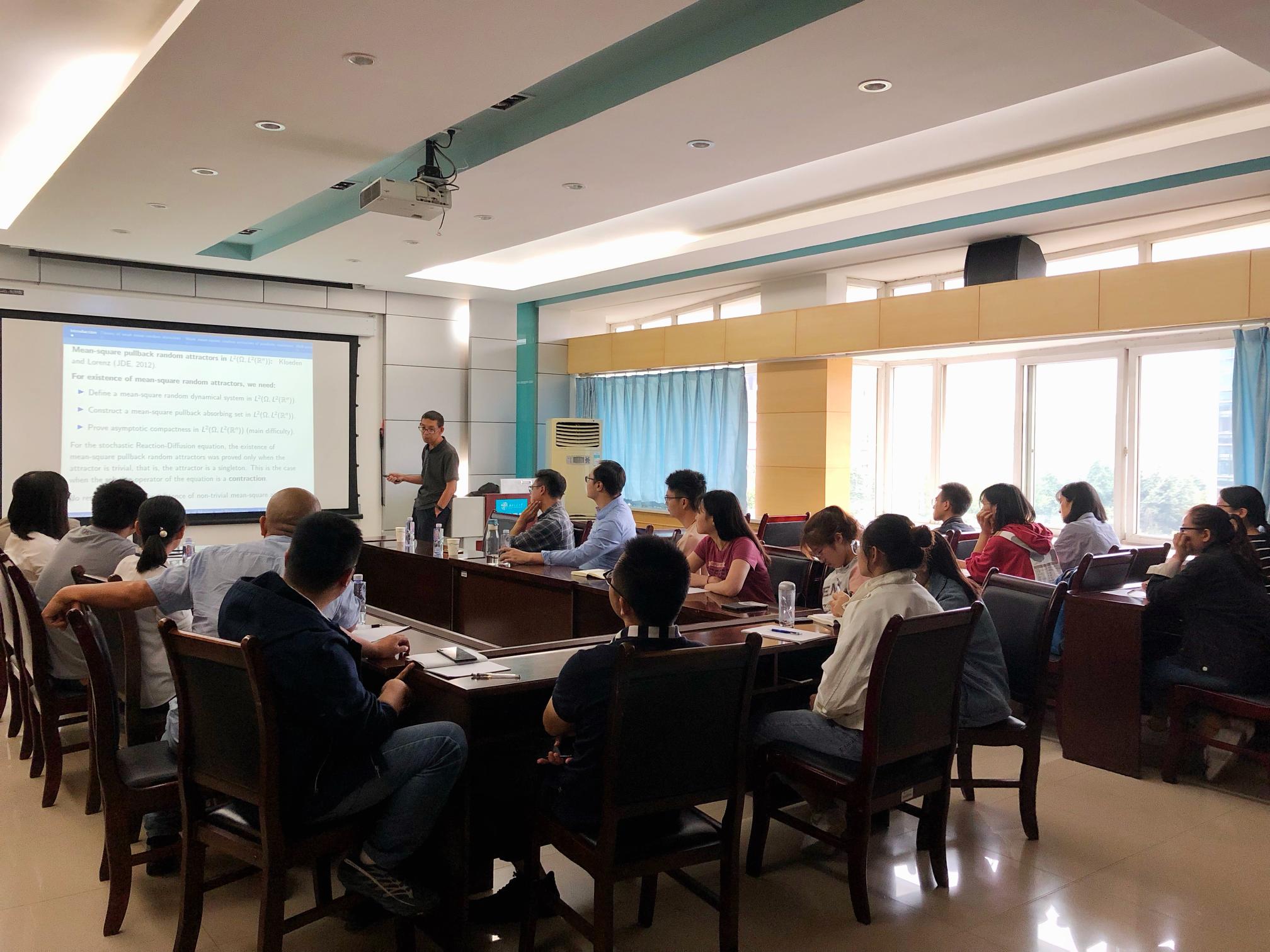 进行有关无穷域上分数抛物型方程的随机动力学学术报告会。