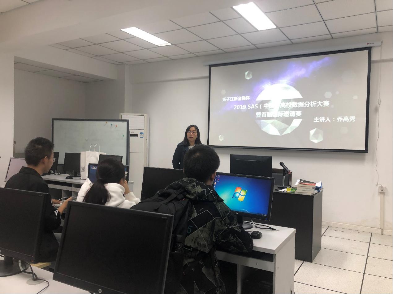 乔高秀老师主讲。乔高秀老师从四个方面进行讲述:SAS概况,SAS比赛的赛制及时间,大赛奖励和比赛经验,本次7支队伍的参赛选手都踊跃参与了此次交流会。