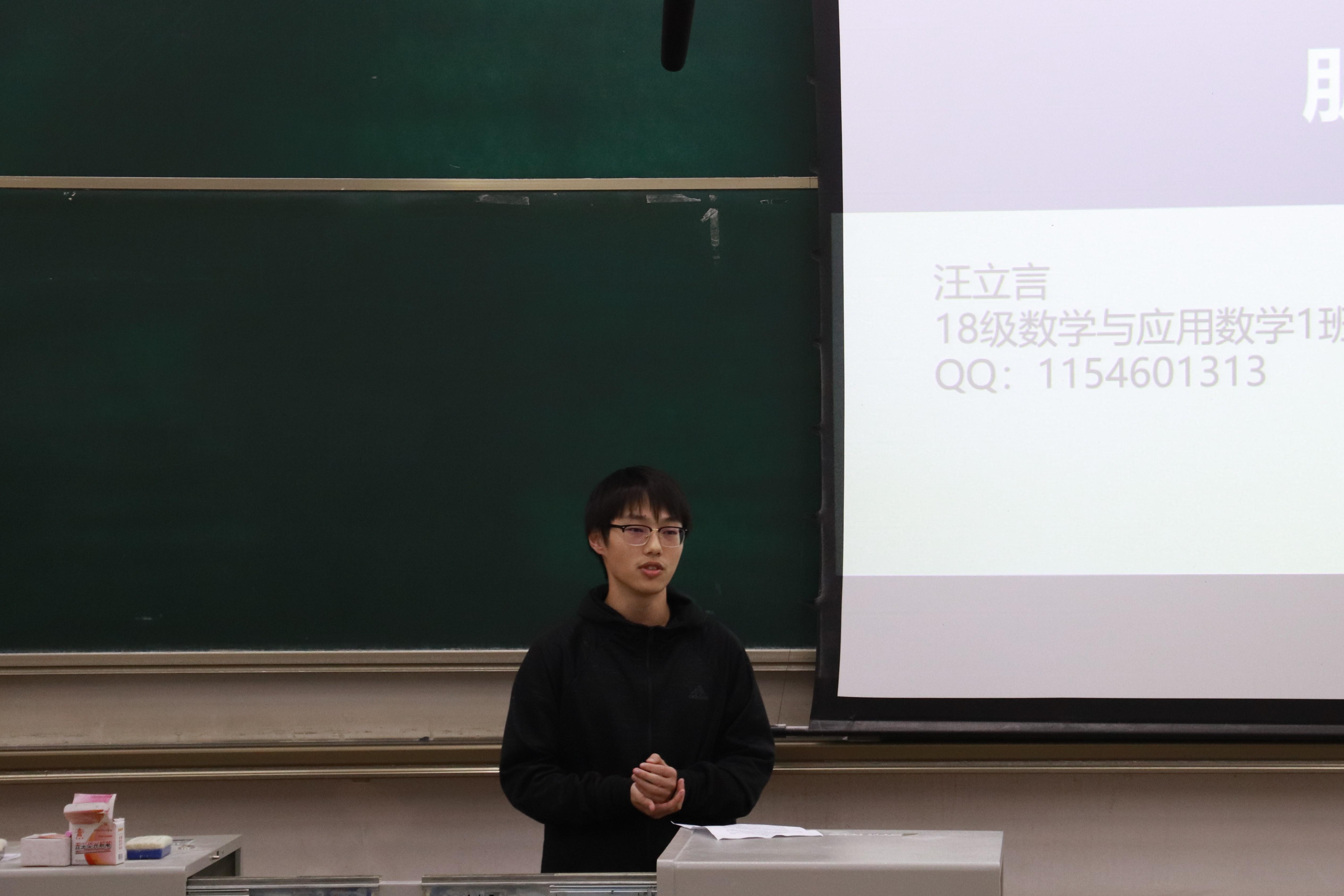 首先,段静静同学对考研与就业的形势进行了分析,并着重在就业方面建议同学们要有一技之长并擅长使用一些电脑工具。紧接着,李昌洲同学详细地阐述了保研、考研与出国的各自优势,鼓励大家做出自己的思考与选择,同时以个人经验讲述了如何把握业余爱好与专业知识学习时间并分享了他的学习经验。张姣同学则是以上课以及参与竞赛的自我状态,告诉同学们要找到志同道合并愿意学习新知识的伙伴,同时向大家分享了个人计划以及学习心得。最后分享的是来自18级的两位优秀学生代表汪立言同学和王震同学。汪立言同学以幽默的口吻希望同学们认清自己并确立个人目标,不在乎过去的水平,努力适应并喜欢自己的专业,了解自己真正的需求并朝该方向努力。王震同学则十分细致的指出了自律与自由的概念与要求,举例强调大学生在自由的氛围里也应该自律,脚踏实地,不去走“捷径”。
