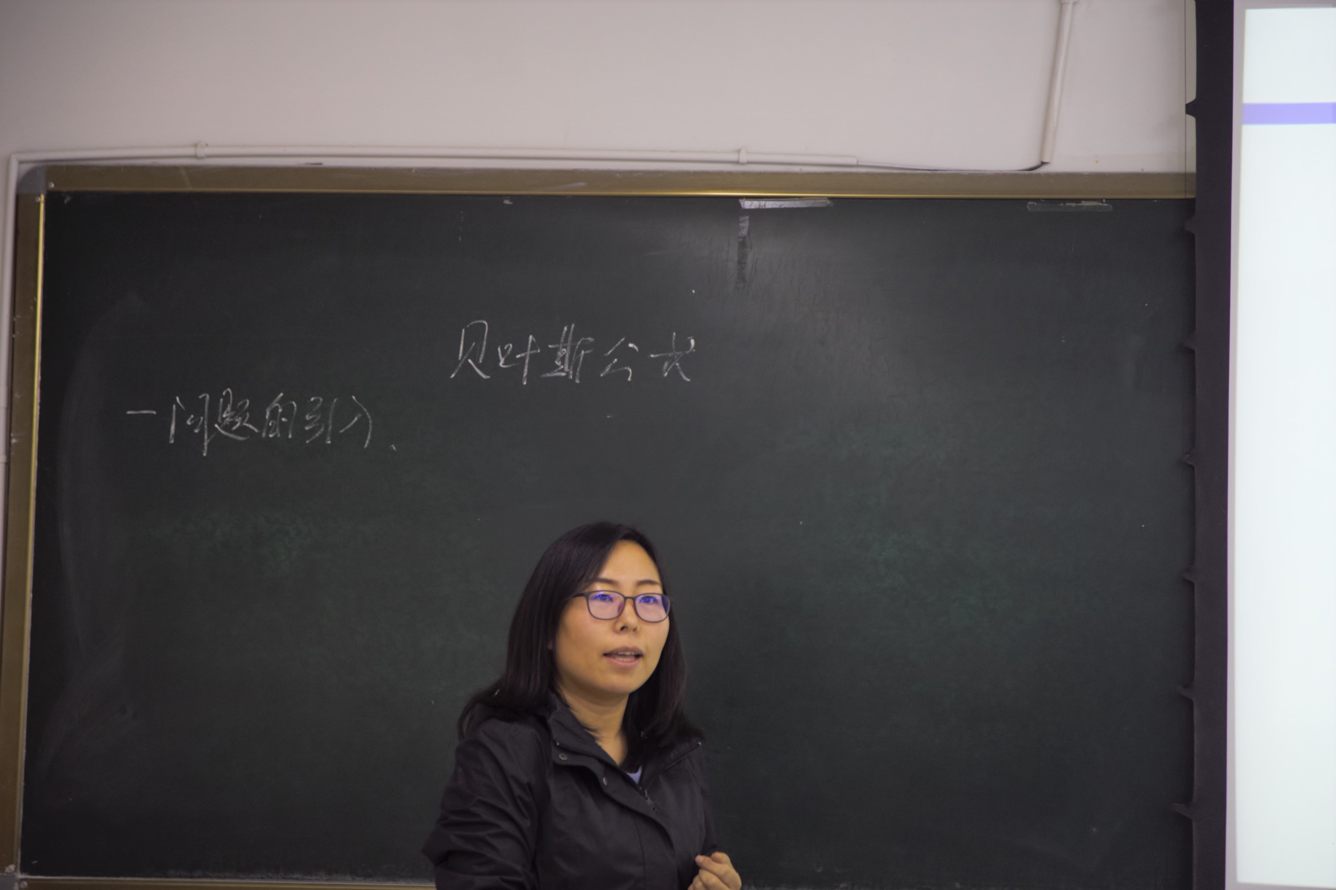 的青年教师们准备的内容丰富多彩,涉及范围广泛:既包含线性代数中线性方程组求解的基础内容,也涵盖离散数学中一阶逻辑的专业知识;有概率论、高等数学等必修课的精彩讲解,同时也有限修课程数学建模中钢管下料的经典问题。特别是陈崇双老师在讲授研究生课程极大似然估计时,以前天刚刚结束的国足比赛为背景引入新知识,在严谨规范的推导与讲解的同时,融入轻松活泼的动漫与卡通元素,增强了课堂的吸引力,也让复杂繁琐的数学内容不再枯燥乏味。