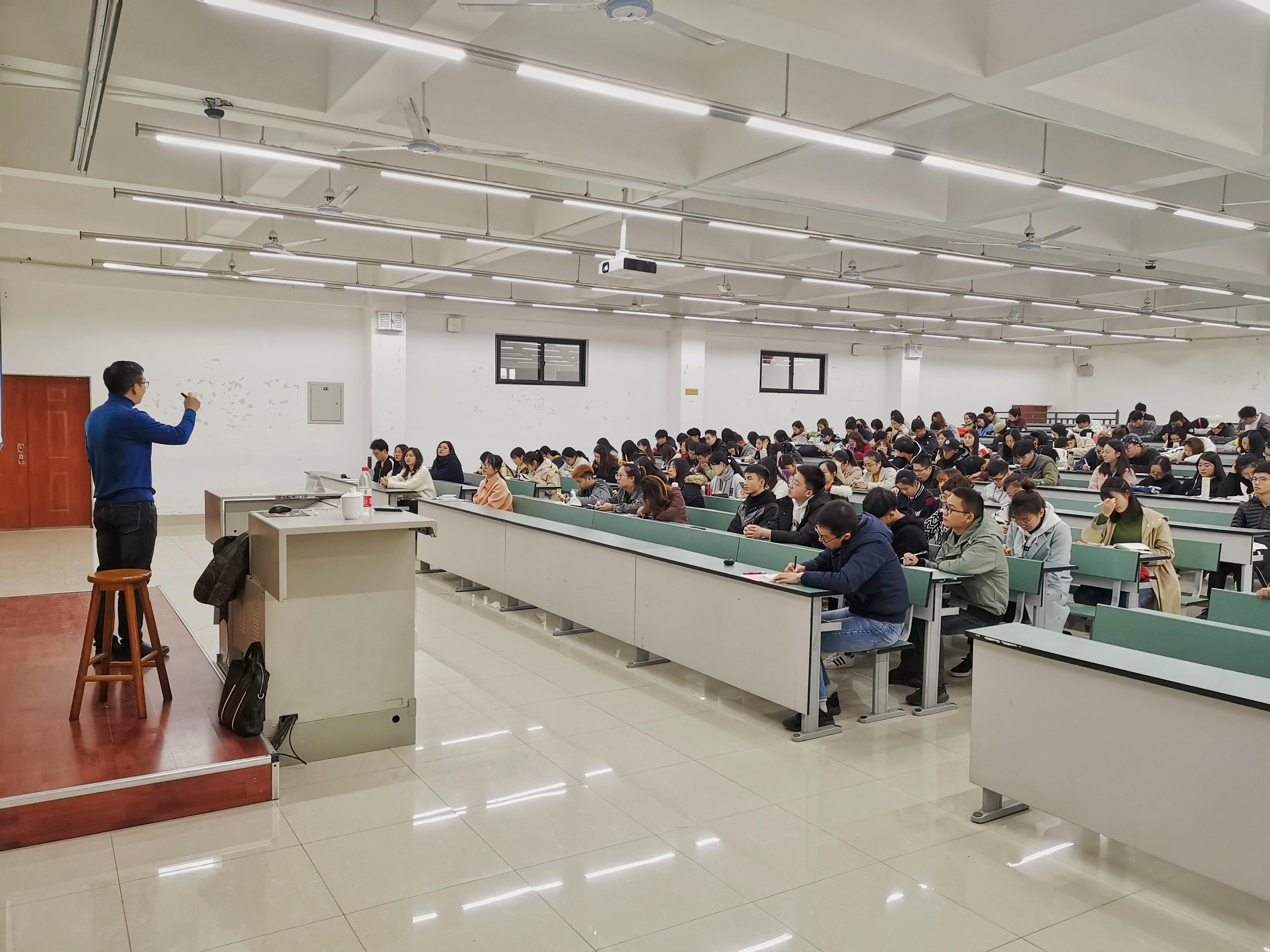的同学代表分别从探寻自我,开启未来,贡献国家等方面发表了自己的观点。孔老师先点评完同学们的回答,然后教导大家,大学的学习实质可以归为专业知识技能,可迁移技能等的学习。接着,他现身说法,向同学们讲述了他曾经因一个偶然的契机获得启发,最终创建成都高校秘书协会的实际事例。以此鼓励同学们要多参与学生活动,多留心观察和思考,提升自我能力。最后,孔老师结合自我教学工作经验向同学们介绍了几种实用的学习方法。一是群体从游式学习:要与优秀者为伍。孔祥彬老师以自身的学生工作为例,告诫同学们要学会向身边人学习,利用好资源。二是留白无用式学习法。孔老师提到切忌将自己的时间安排满当,要学会给自己留白,留白出时间用于思考,规划。