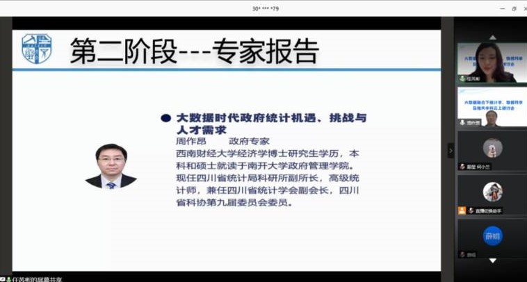 承办的大数据融合下统计学、数据科学及相关学科云上研讨会顺利进行。在当前大数据时代下,统计学、数据科学及相关领域已然成为社会关注热点,本次研讨会旨在进一步加强相关学科的建设,帮助四川省各高校相关专业师生了解统计学,数据科学及相关专业的前沿发展以及国内外的就业前景。