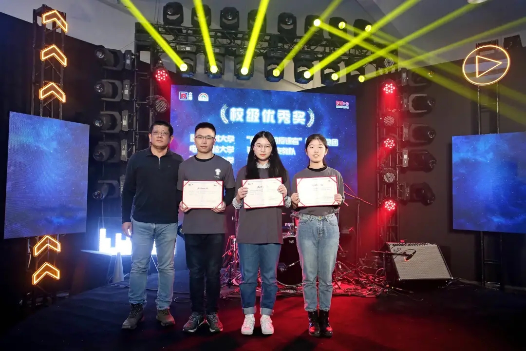 团委书记邓思然,团委副书记钟义婷,“向阳而开”团队代表谢健祥、杨丽莎代表 av解说