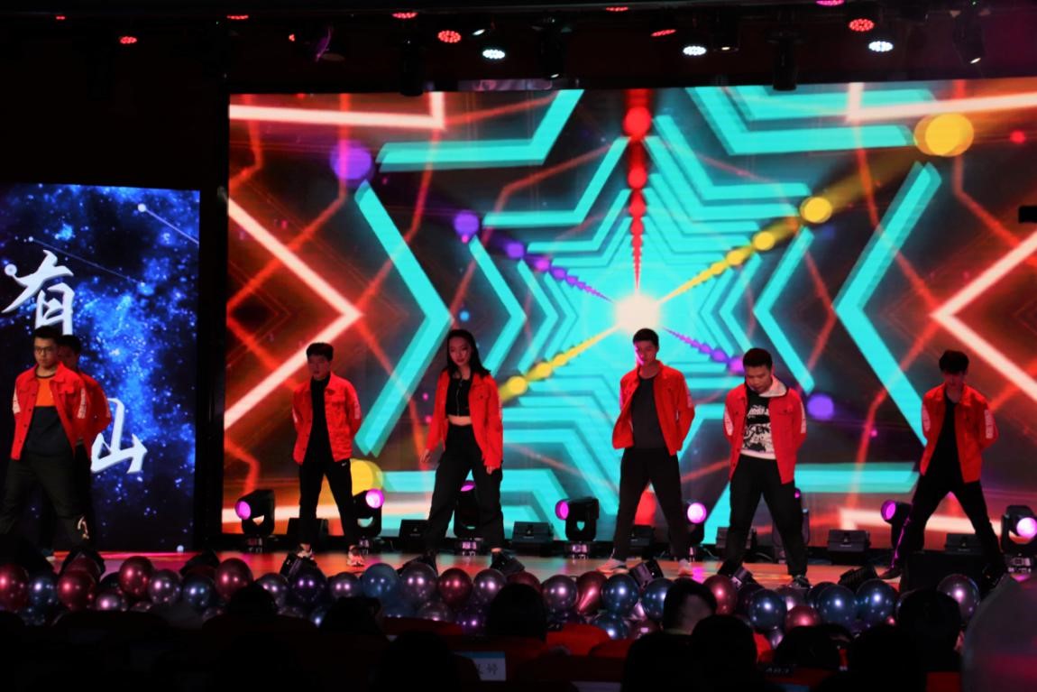第五个节目是由学工组带来的神秘节目。他们活泼可爱的形象让同学们看到平日里不一样的辅导员老师们,同学们都纷纷拿起荧光棒为他们的节目喝彩,场上气氛一度达到高潮。
