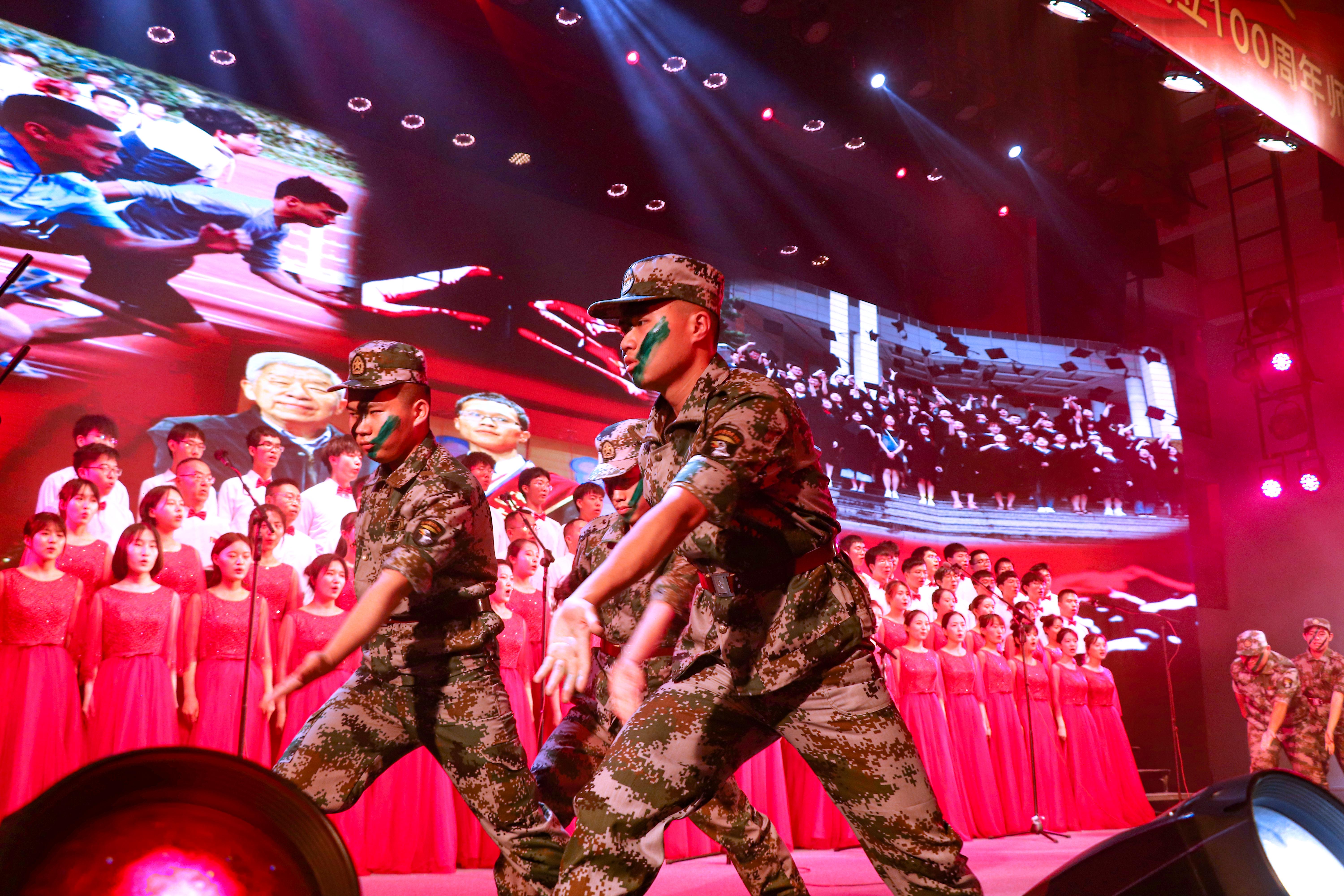 的师生们——台上的交大数学人怀着满腔热血,气贯长虹,激情豪迈地诉说着中国军队的故事,展示了中国军队的军魂。