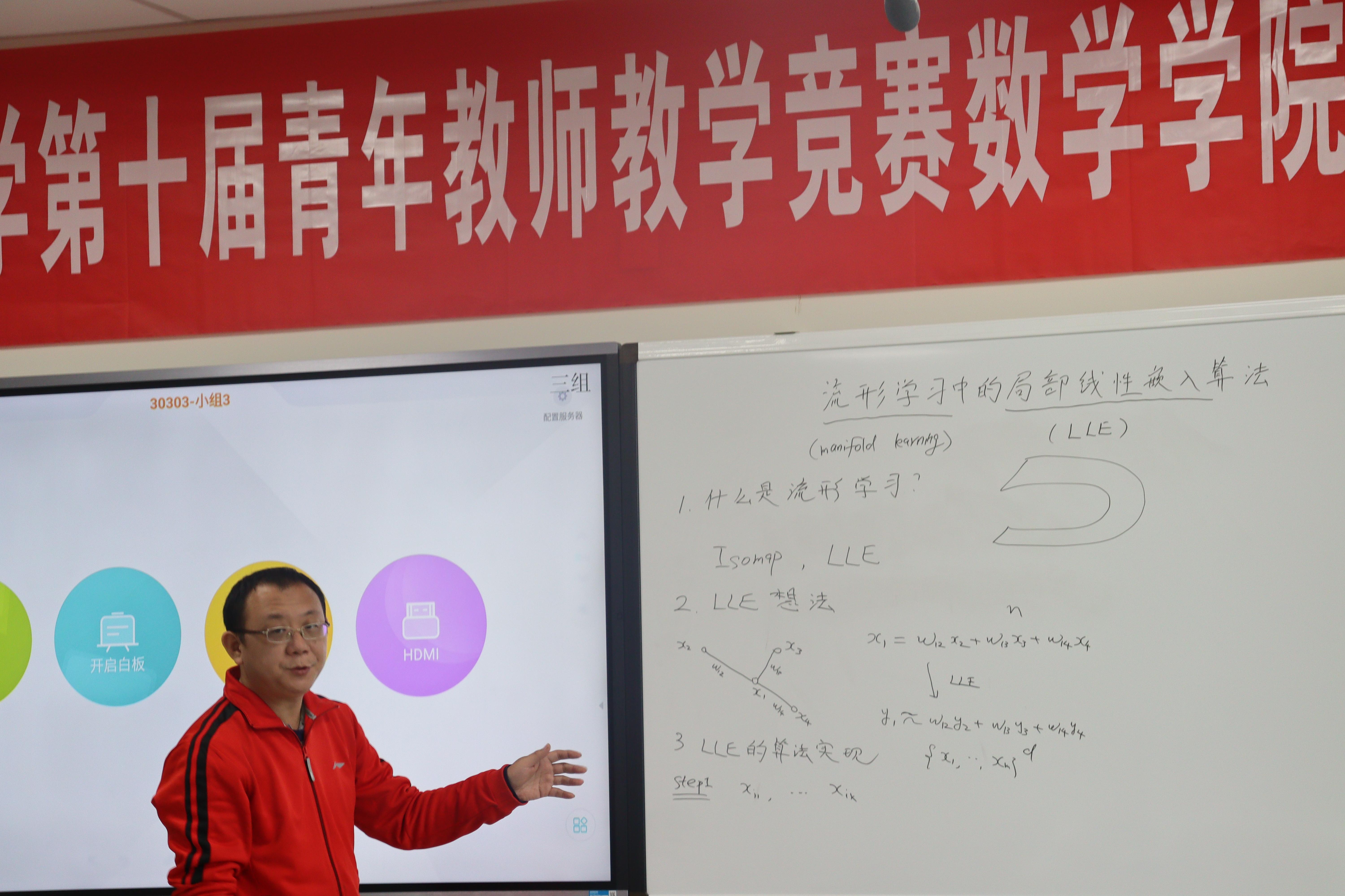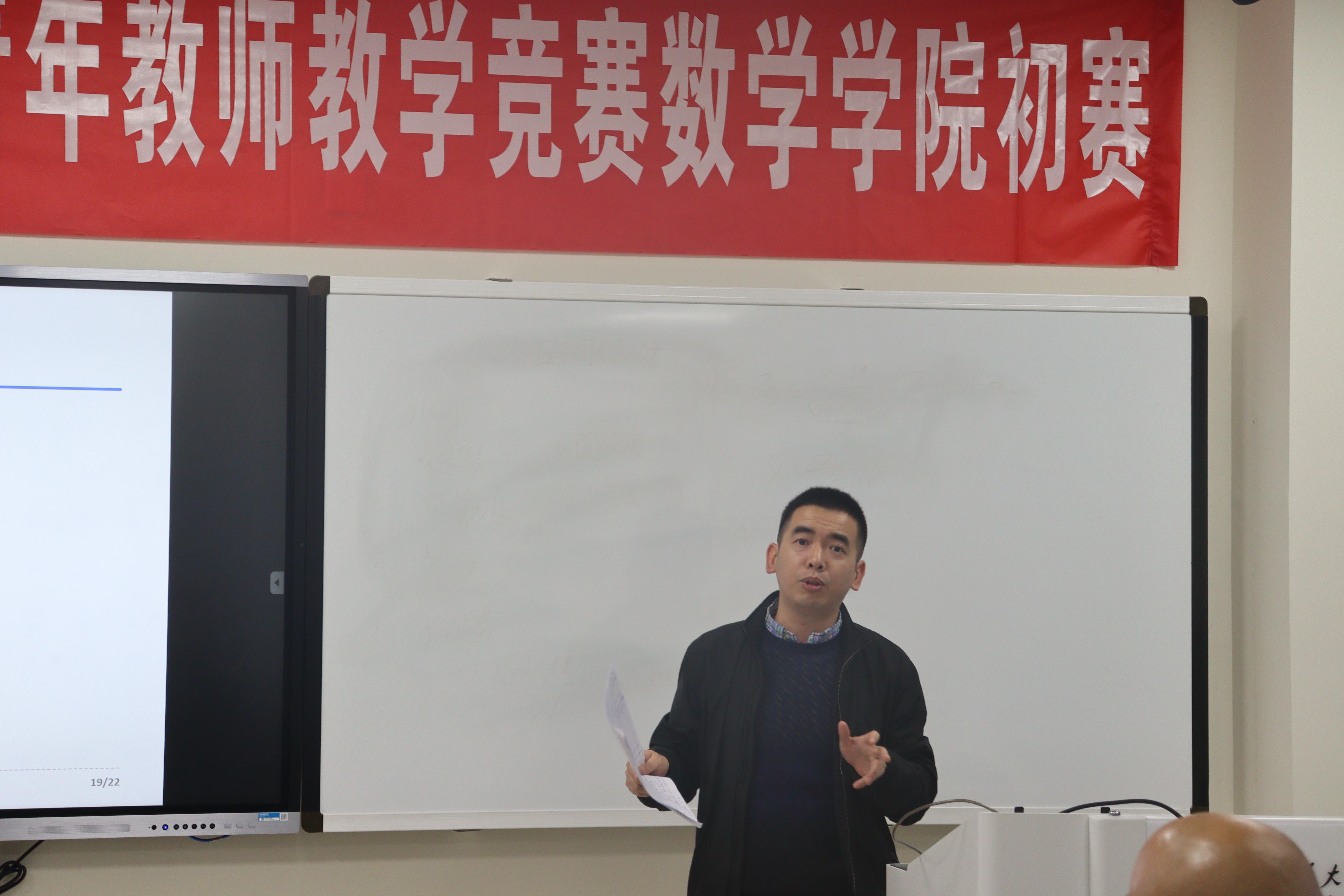 在此次竞赛中,参赛教师从参赛课程中选取一个教学阶段,在20分钟之内对该阶段进行讲解,参赛的青年教师们按顺序上台,讲解方式主要以多媒体为主,板书为辅,内容丰富多彩,涵盖数学领域各个方面。各位青年教师慷慨激昂,充分展现了个人的课堂魅力。讲解结束后,各组的四位评委老师针对教学内容,教学组织,教学语言与教学态度四个方面进行点评,指出其中的不足并给予各自的建议。在最后环节,进行一到两位青年教师试讲活动,各位青年教师以自己的独特的教学方式赢得各位评委老师的赞扬,同时,评委老师也指出其中的短板并提出了中肯合理的建议。