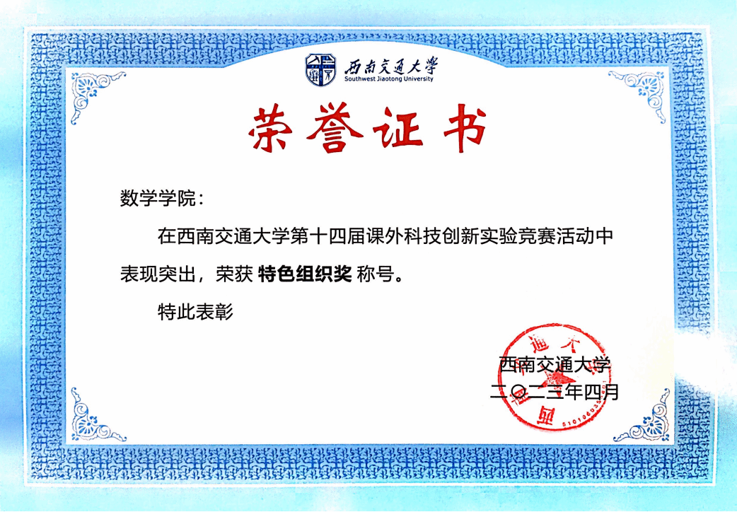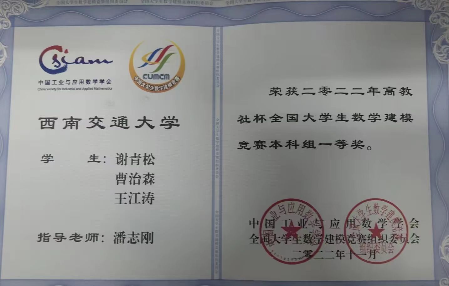 大学生创新教育基地,数学实验中心承担着全校本研各类数学建模竞赛活动,包括“高教杯”全国大学生数学建模竞赛、美国数学建模竞赛、苏北数学建模竞赛、华中数学建模竞赛、电工杯数学建模竞赛、“华为杯”全国研究生数学建模竞赛及校内各种竞赛活动。近几年,中心参与各类数学建模竞赛成绩突出,“高教杯”大学生数学建模竞赛屡获全国一等奖、二等奖等重要奖项,其中2021年斩获“高教社杯”全国唯一最高奖,取得历史性突破。总成绩在四川省所有高校中名列第一,全国前列。